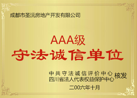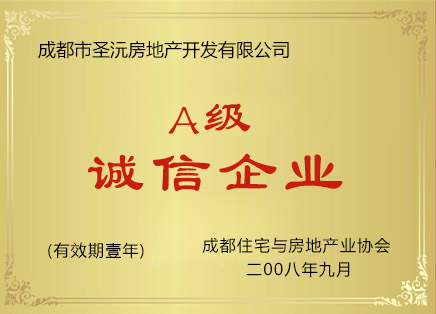 公司成立至今荣获了许多荣誉:2003年获成都房地产业“诚信企业”称号,2005年被评为“AAA级客户满意单位”,2006年被评为“客户满意先进单位”、“AAA级守法诚信单位”和“合法权益保护单位”,2008年被评为“A级诚信企业”和“四川省首届十佳明星法人单位”,2009年获四川省“重质量·讲诚信AAA级品牌企业”称号;2011年获得“建设领域诚信守法模范单位”、“广厦杯成都市房地产开发优秀质量管理企业”、“四川省诚信房地产开发企业”等荣誉称号;2012年获“企业诚信评价AAA级”。2013年获得“诚信示范企业”、2014年获得“信用创建先进单位”。