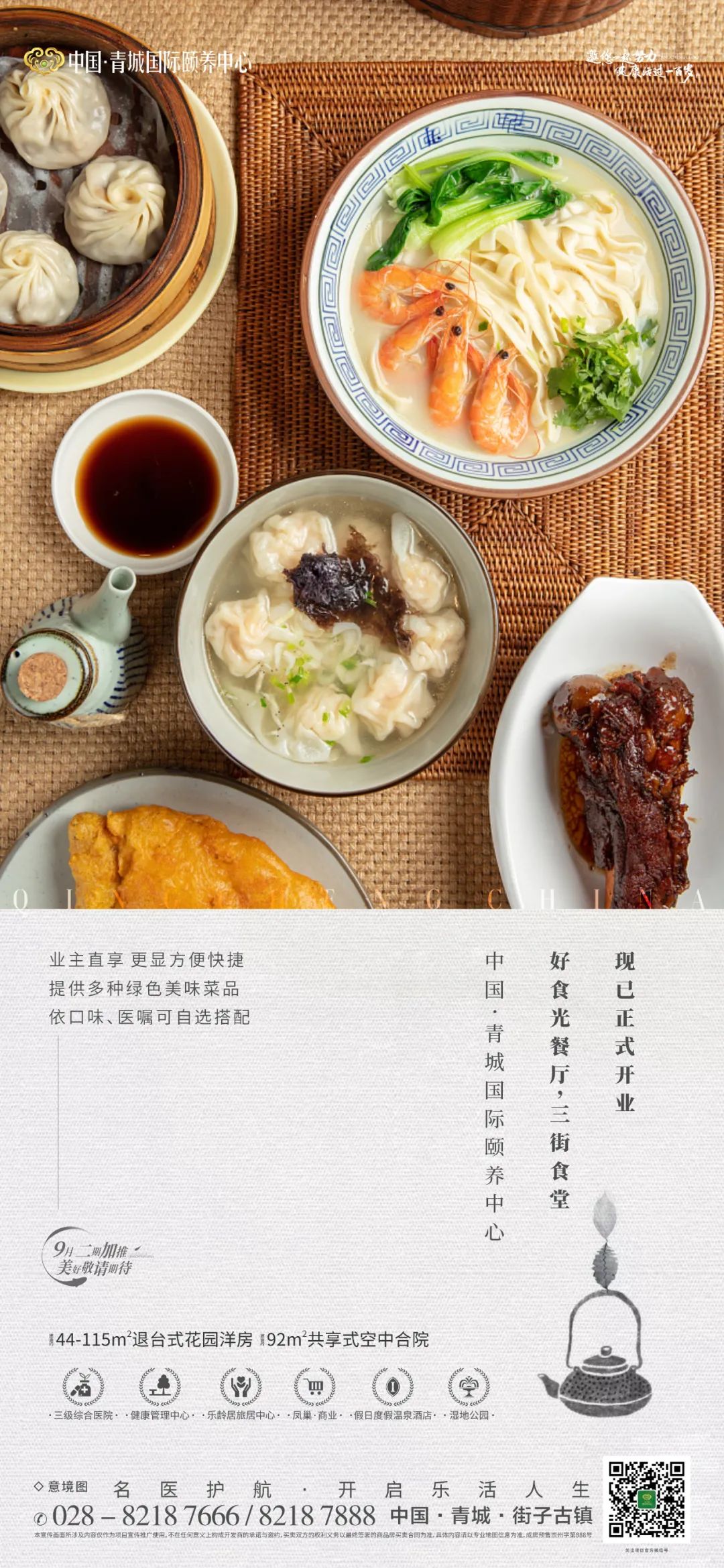 目前,青城国际颐养中心已开业两大食堂——好时光餐厅、三街食堂,每日提供多种绿色美味菜品,只等老友、家人们一起来品尝美食,食遇青城好滋味!