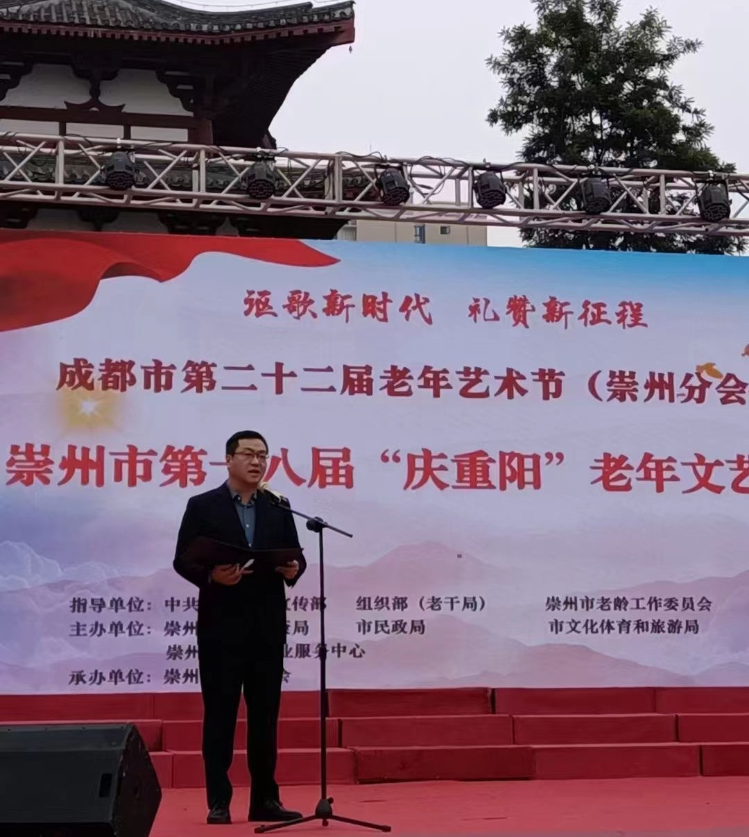活动当天,相关部门领导亲临相府广场活动现场。老年协会会长,老年人体育协会主席张春生致辞,中共崇州市委宣传部部长,老龄委主任叶昊宇发表重要讲话并宣传活动演出开始。