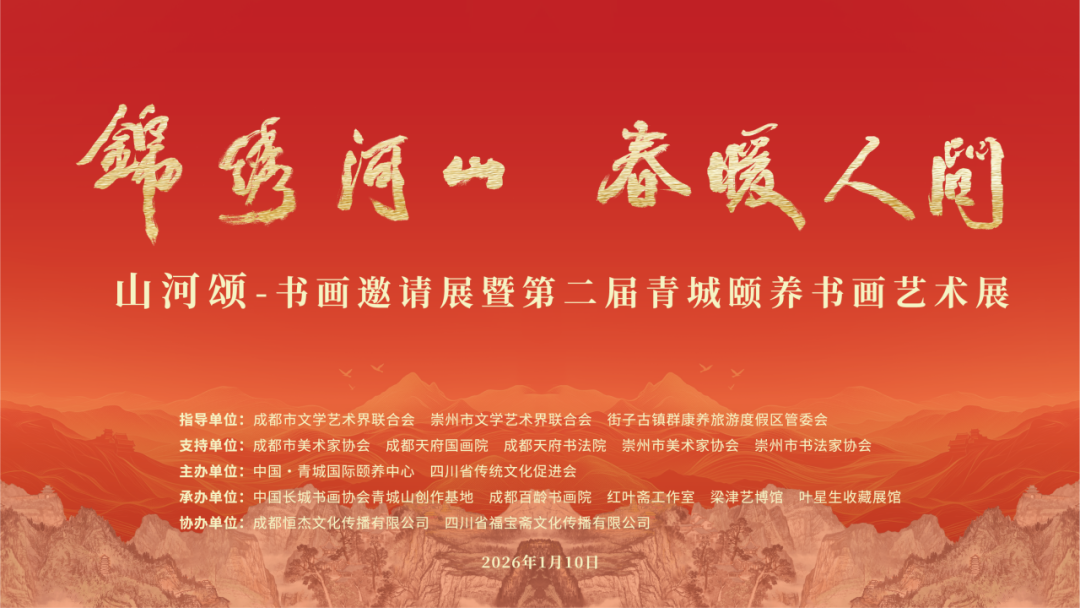 2026年1月10日,“锦绣河山 春暖人间”山河颂-书画邀请展暨第二届青城颐养书画艺术展在中国·青城国际颐养中心凤凰大厅盛大启幕。本次展览为重量级书画艺术盛会,汇聚全国及省内书画名家与社区长者作品,涵盖书法、国画、水粉、版画等多种艺术形式,是一场高水准、融合传统与当代的书画雅集。