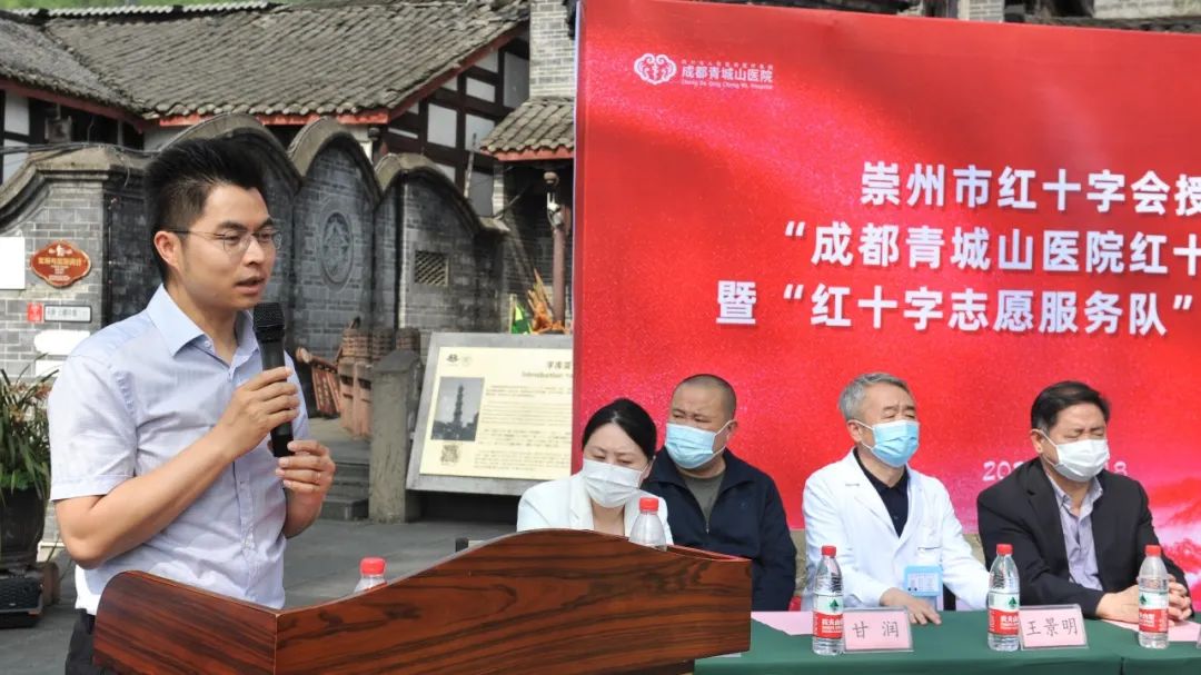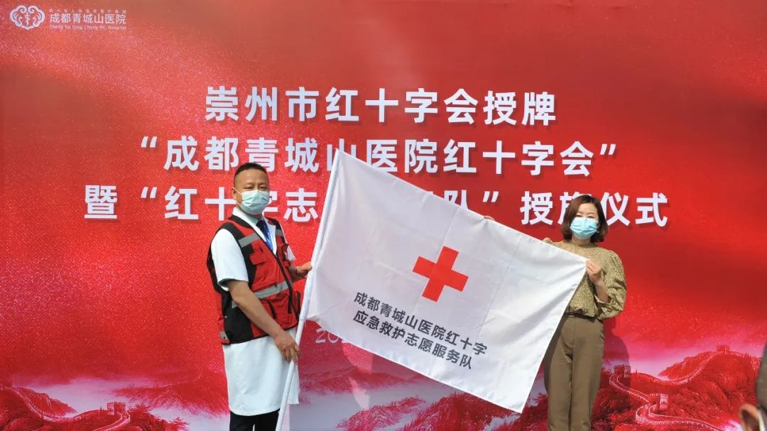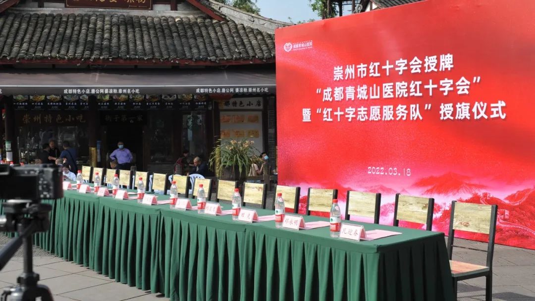 为贯彻落实全国红十字总会“基层组织建设年”决策部署,弘扬“人道、博爱、奉献”的红十字精神。3月18日,崇州市红十字会授牌“成都青城山医院红十字会”暨“红十字志愿服务队”授旗仪式在崇州市街子古镇银杏广场圆满举行。