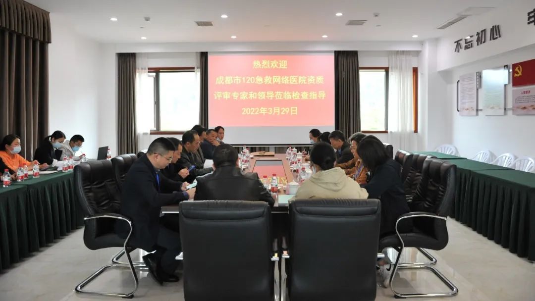 3月29日下午,成都市医疗急救指挥中心专家组一行对成都青城山医院加入成都市120急救网络医院资质进行现场评审,成都青城山医院院长王景明、副院长石德光及医务部相关人员陪同检查。