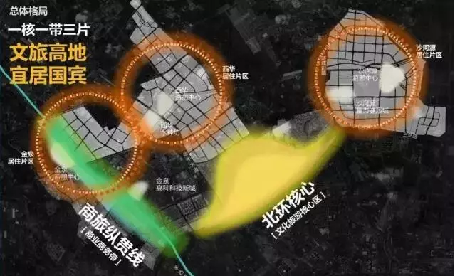 按照规划,位于金牛坝的北环嘉年华核心、沿羊西线展开的商旅纵贯线以及由片区中心带动发展的三大居住片区将共同演绎国宾板块特色文化创意、创新型都市旅游、高品质居住整体联动的特、新、亮未来发展愿景。