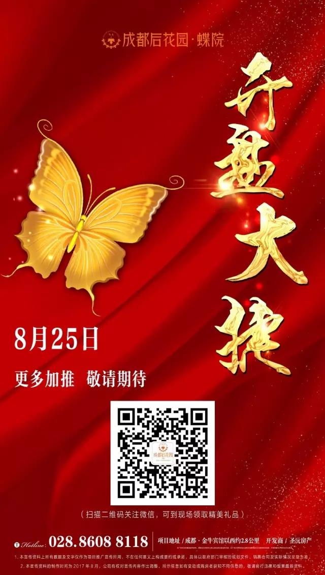 成都后花园·蝶院上演速度与激情,8月25日成都后花园·蝶院,首批次44号楼开盘 247套房源,建面81-136㎡全系装修华宅
