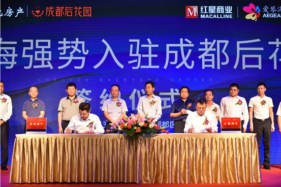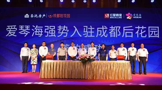 2017年7月31日,红星商业与成都圣沅房产签订战略合作协议,红星商业旗下的爱琴海大型综合商业零售品牌将进驻成都市郫都区,双方携手打造成都大城西区商业新地标。省、市、区相关领导及中购联购物中心发展委员会主任、中国城市商业网点建设管理联合会副会长兼秘书长郭增利、红星商业副总裁王东、红星商业副总裁王强、重庆润凯商业集团董事长、成都爱琴海项目建设总负责人谌俊宇、成都圣沅房产董事长李元庆等出席了此次签约仪式。