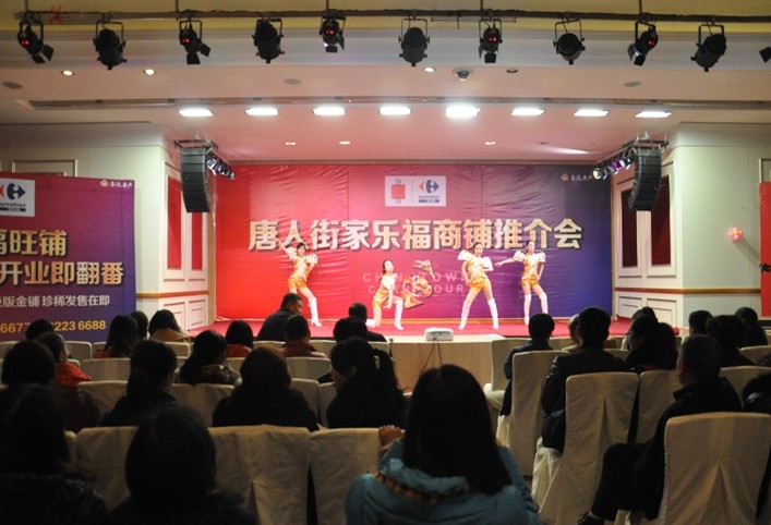 圣沅房产大城西扛鼎力作中国·成都·唐人街项目,在万众瞩目之下,于崇州五星级酒店中胜大酒店一楼鸿宾厅举办了首次家乐福商业项目推介会,现场高朋满座,逾百人兴致高昂地参与了本次商业推介会。整个活动紧凑有序的进行,由五个部分组成:热烈开场舞、圣沅公司高管推介、沙画表演、商业代理公司新港高管详解、自助餐会。