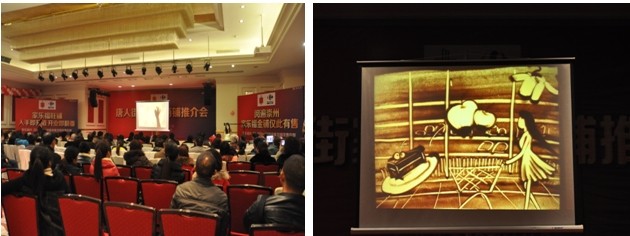 在圣沅房产下属子公司成都市佳理商业管理有限公司总经理张总热情洋溢地介绍之后,悠扬的音乐响起,灯光变暗,屏幕上投影出一副中国地图,在沙画艺术表演者灵巧的双手中,中国·成都·唐人街的整体鸟瞰跃然呈现,随着音乐的高低起伏,画面不停变幻,家乐福一站式购物中心的生活场景、唐人街窗外繁华的街区、北美街区内一次美丽的邂逅……种种美好都市生活的畅想都将在唐人街成为现实。现场嘉宾目不转睛地看着大屏幕,不少人拿出手机拍照摄像,留下这如同艺术般美好生活的见证。